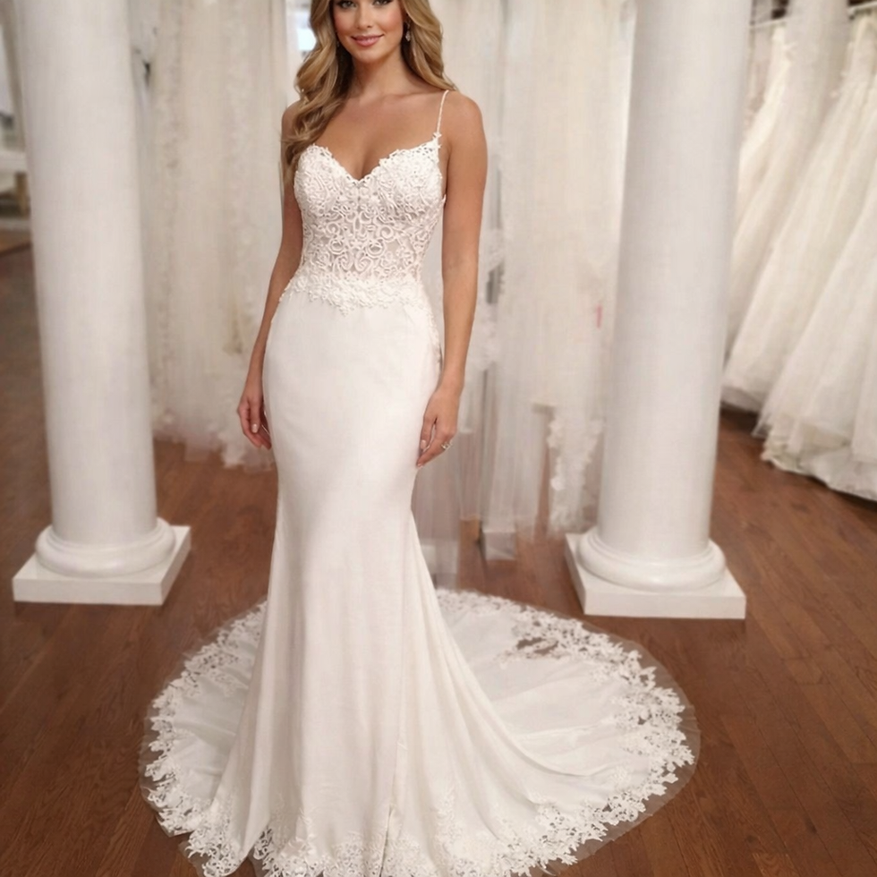Gorgeous Spaghetti Straps lace Soft satin Mermaid Beach Wedding Dresses MD730